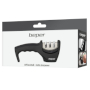 Dotato di tre stadi di affilatura: dischi in diamante idonei per riparare o rifare il filo della lama, dischi in tungsteno per la vera e propria affilatura fine e dischi in ceramica per lucidare la lama