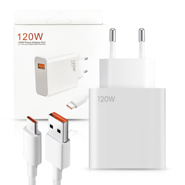 CARICABATTERIA USB 120W CON CAVO USB - TYPE-C BIANCO