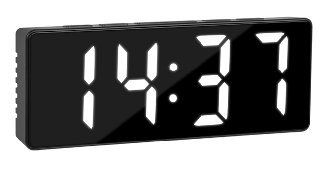 Lo schermo LED oltre a ore e minuti, visualizza anche la data corrente: giorno, mese e anno. È uno strumento eccellente per l'uso quotidiano, sia a casa che in ufficio. Il display funziona nel formato 12/24 ore, consentendo all'utente di adattare facilmente la visualizzazione alle proprie preferenze