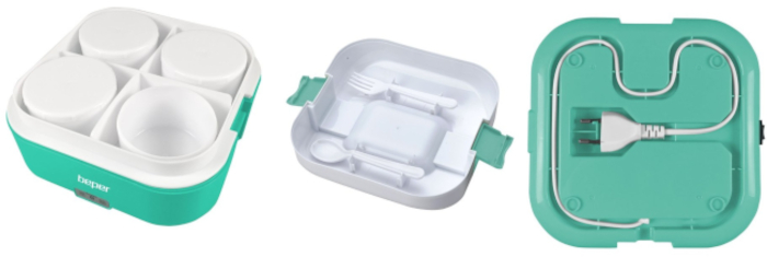 Pratico scaldavivande in abs munito di contenitore interno removibile in plastica con coperchio e piastra riscaldante in acciaio
