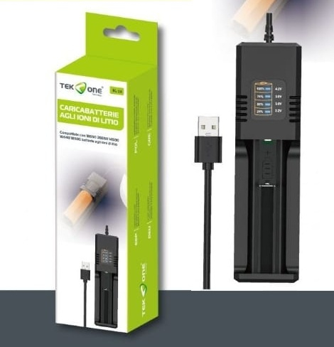 CARICABATTERIA PER BATTERIE AGLI IONI DI LITIO 18650 CON CAVO USB BL-18