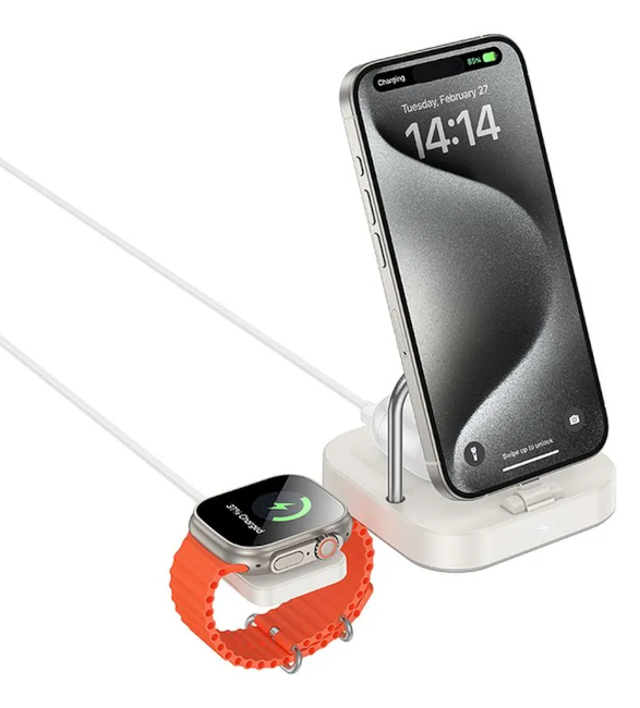Pratico caricabatterie wireless che consente di ricaricare contemporaneamente smartphone, Apple Watch e AirPods wireless. Grazie al suo design compatto e al supporto per la ricarica wireless, e' la soluzione perfetta per l'uso domestico e in ufficio