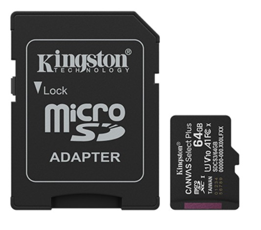 MICRO SD HC KINGSTON 64 GB CON ADATTATORE SD CANVAS SELECT PLUS CLASS 10 V10 A1