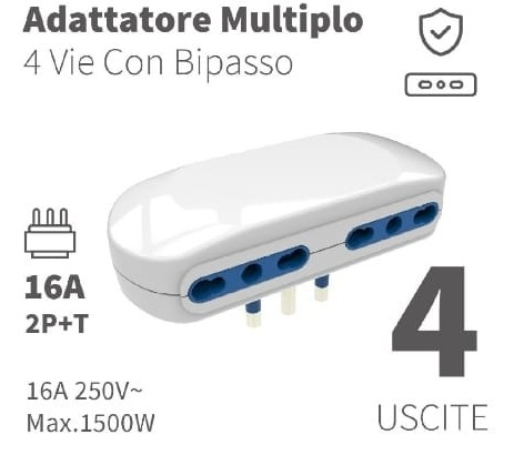 ADATTATORE 16A CON 4 USCITE BIPASSO 16A 250V MAX 1500W