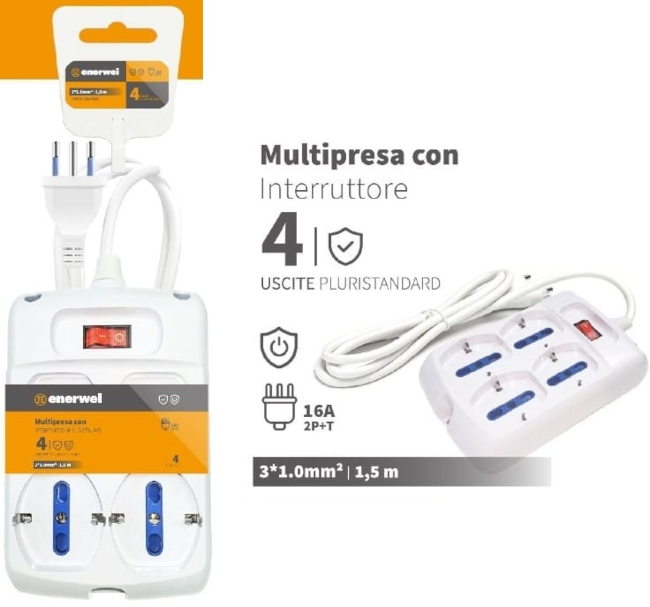 MULTIPRESA CON INTERRUTTORE A 4 USCITE 16A 250V MAX 3680W 1.5M