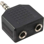 Con questo adattatore è possibile sdoppiare l'uscita audio di una periferica come ad esempio un lettore MP3, un Notebook, un Tablet per consentire il collegamento di due cuffie stereo o altro.