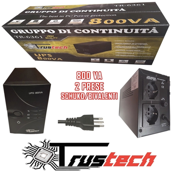 GRUPPO DI CONTINUITA' UPS 800VA 480W 2 USCITE BIVALENTI AC RESTART TRUSTECH