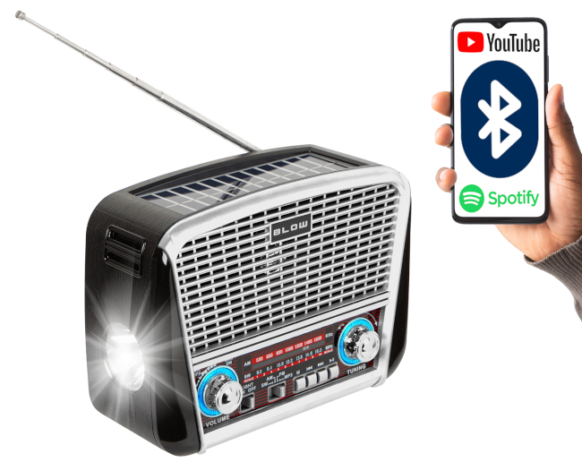 RADIO ANALOGICA PORTATILE AM/FM BLUETOOTH RA17 SILVER CON PANNELLO SOLARE