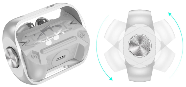 Gli auricolari presentano una parte centrale rotante che permette la rotazione delle cuffie così da prelevarle più facilmente in base alle proprie necessità