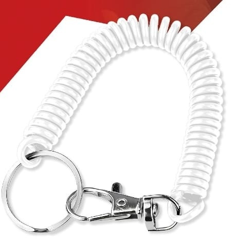 PORTACHIAVI A MOLLA RETRATTILE CON GANCIO BIANCO