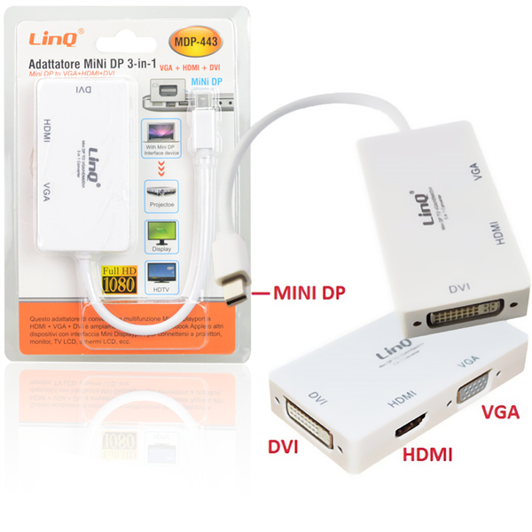 ADATTATORE DA MINI DISPLAY PORT A HDMI - VGA - DVI
