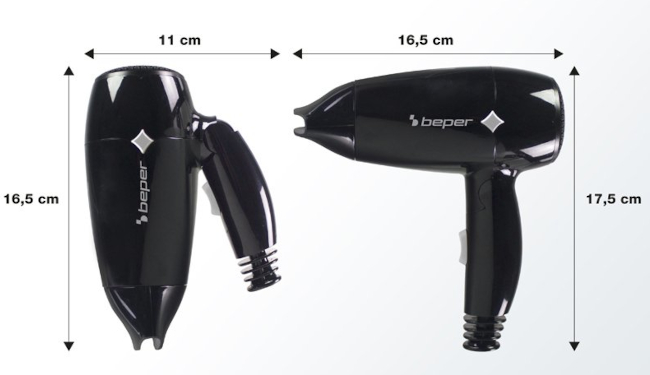 Asciugacapelli compatto ideale per il viaggio, grazie al manico pieghevole che consente il trasporto con il minimo ingombro