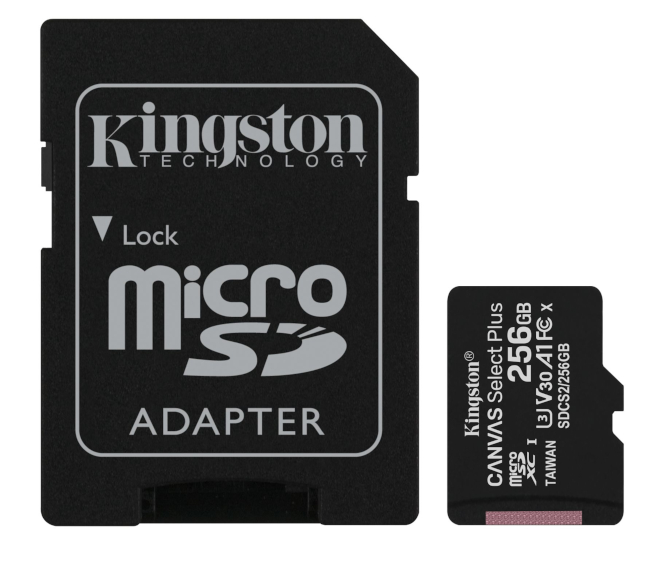 MICRO SD HC KINGSTON 256 GB CON ADATTATORE SD CANVAS SELECT PLUS CLASS 10