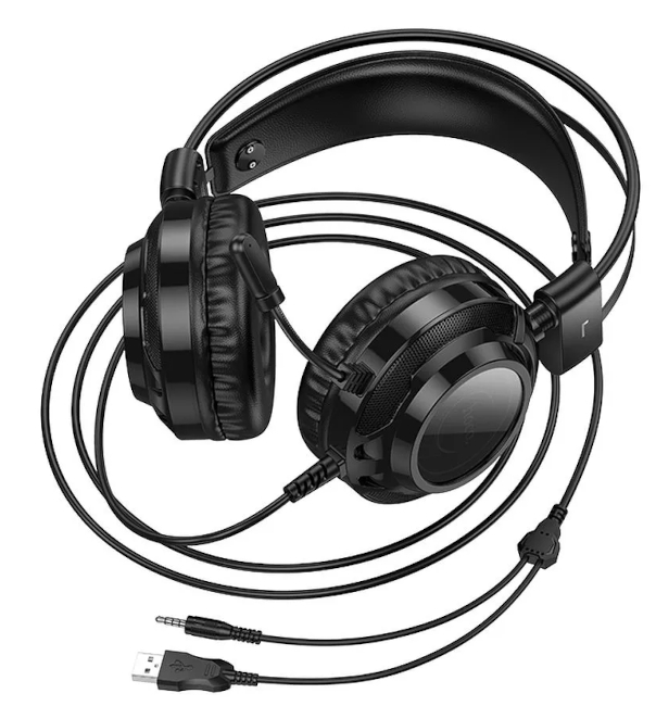CUFFIE DA GAMING JACK 3.5MM + USB HOCO W100 CON MICROFONO 2M NERE