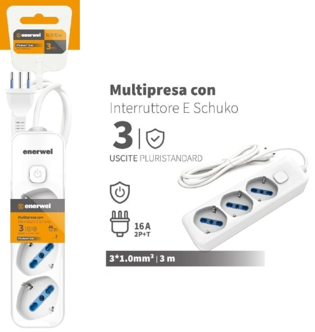 Numero di uscite: 3 prese pluristandard 16A 250V