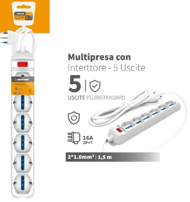Numero di uscite: 5 prese pluristandard 16A 250V