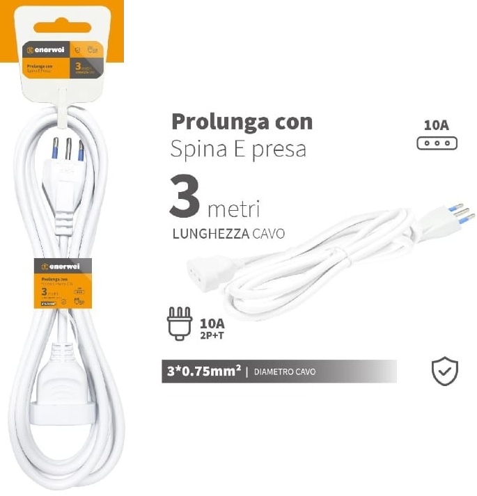 PROLUNGA CON SPINA E PRESA 10A 250V MAX 2300W 3M
